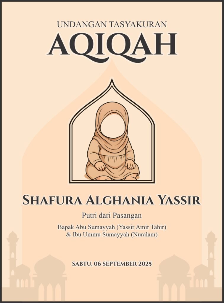 UndanganSyukuran Khitan Ahmad Kalamullah Kepada Yth. Bapak / Ibu / Saudara/i Buka Undangan Assalamualaikum Wr. Wb. Dengan memohon rahmat & ridha Allah SWT. Kami bermaksud menyelenggarakan acara Khitan putra kami. Dan Kami mengundang Bapak/Ibu/Saudara/i untuk berhadir pada acara Tasyakuran Khitan ini. Ahmad Kalamullah Putra Pertama Bapak Lorem & Ibu Ipsum Instagram Days Hours Minutes Seconds …