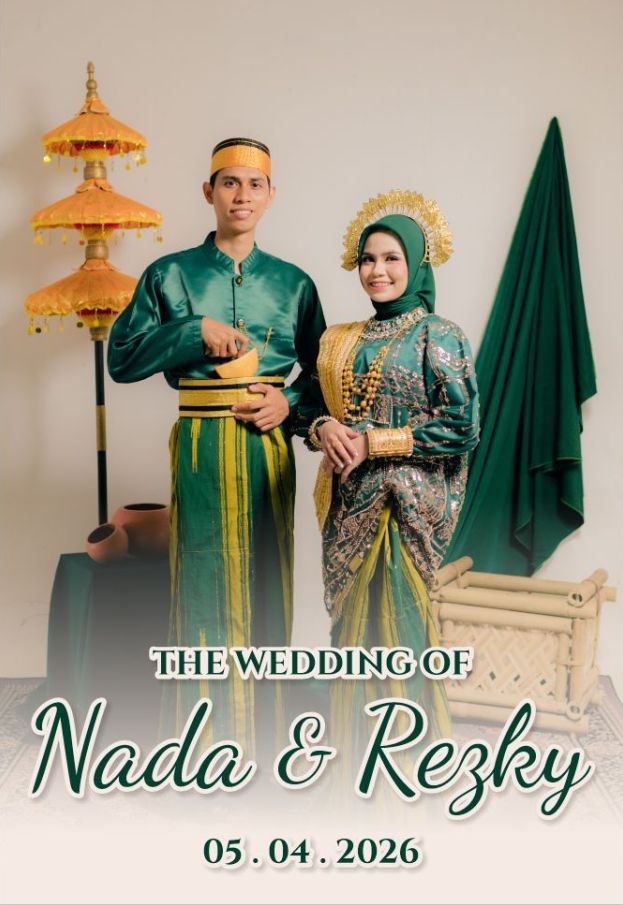 THE WEDDING OF 01 & 05 . 04 . 2026 Assalamu’alaikum Wr.Wb Tanpa mengurangi rasa hormat, kami mengundang Bapak/Ibu/Saudara/i serta kerabat sekalian untuk menghadiri acara pernikahan kami Dan di antara tanda-tanda kekuasaan-Nya ialah Dia menciptakan untukmu isteri-isteri dari jenismu sendiri, supaya kamu cenderung dan merasa tenteram kepadanya, dan dijadikan-Nya diantaramu rasa kasih dan sayang. Sesungguhnya …