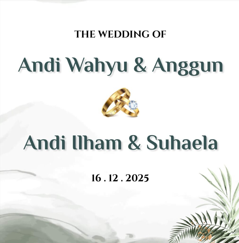 THE WEDDING OF 21 & 27 . 12 . 2025 Assalamu’alaikum Wr.Wb Tanpa mengurangi rasa hormat, kami mengundang Bapak/Ibu/Saudara/i serta kerabat sekalian untuk menghadiri acara pernikahan kami: Dan di antara tanda-tanda kekuasaan-Nya ialah Dia menciptakan untukmu isteri-isteri dari jenismu sendiri, supaya kamu cenderung dan merasa tenteram kepadanya, dan dijadikan-Nya diantaramu rasa kasih dan sayang. Sesungguhnya …